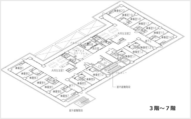 機械浴槽があるのは3・5階、4・6.7階には職員の休憩室が設けられることになっています。